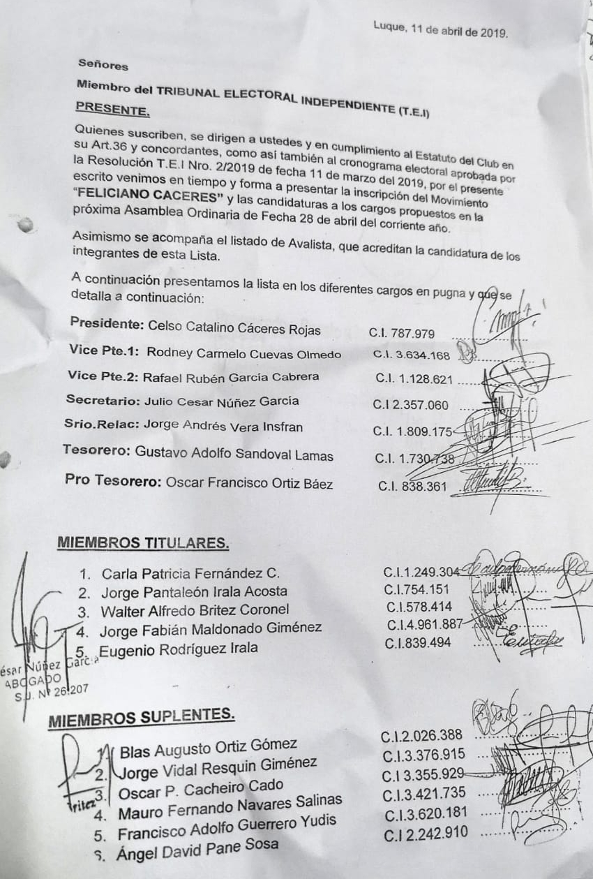 El grupo oficialista se inscribió para las elecciones del Club Sportivo Luqueño