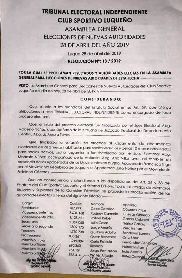 Celso Cáceres Rojas ganó las elecciones del Sportivo Luqueño
