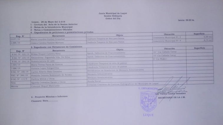 Corresponde a la plenaria del día martes 20 de mayo del 2019