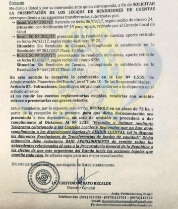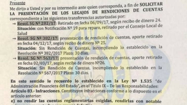 No justificaron las transferencias por 260 millones. El Ministerio de Salud Pública envió la no nota Nº 0514/2018