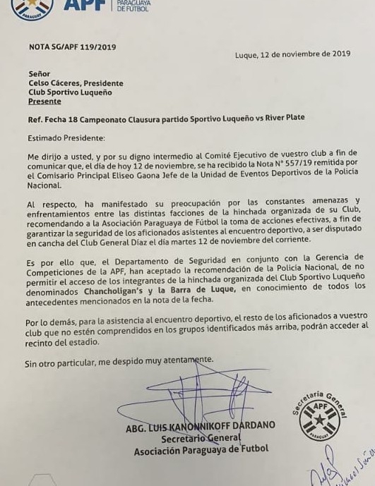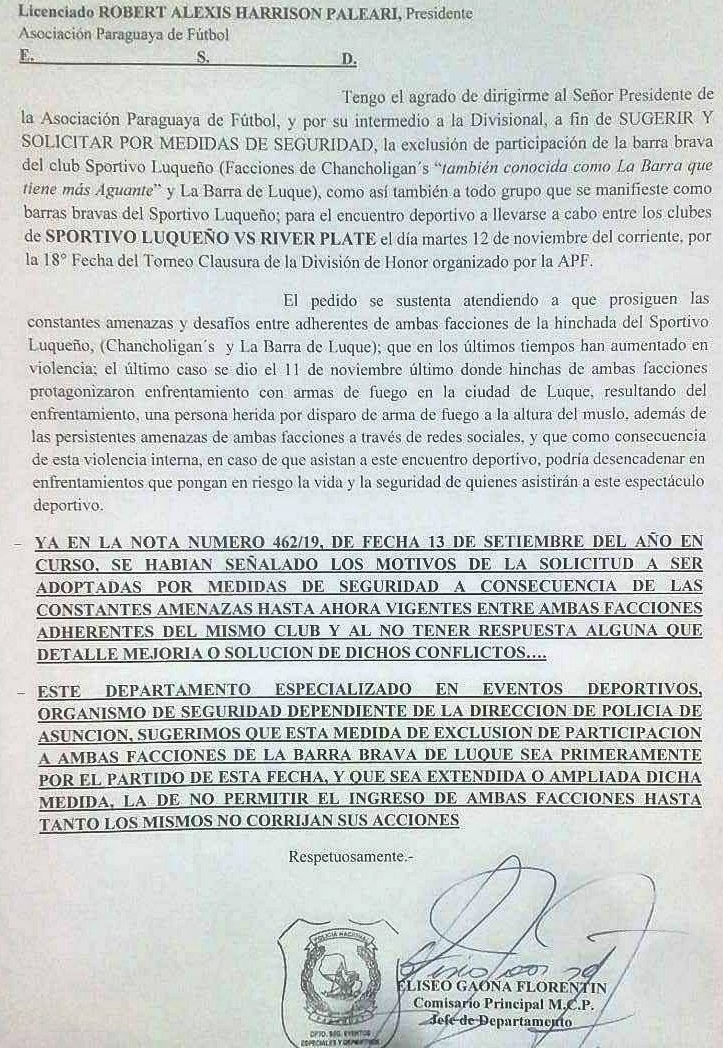 A pedido de la policía, la APF suspende a las hinchadas organizadas