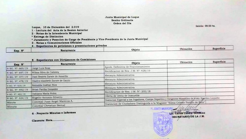Orden del día de la Junta Municipal de Luque