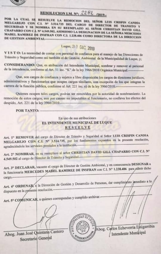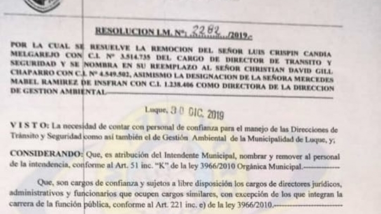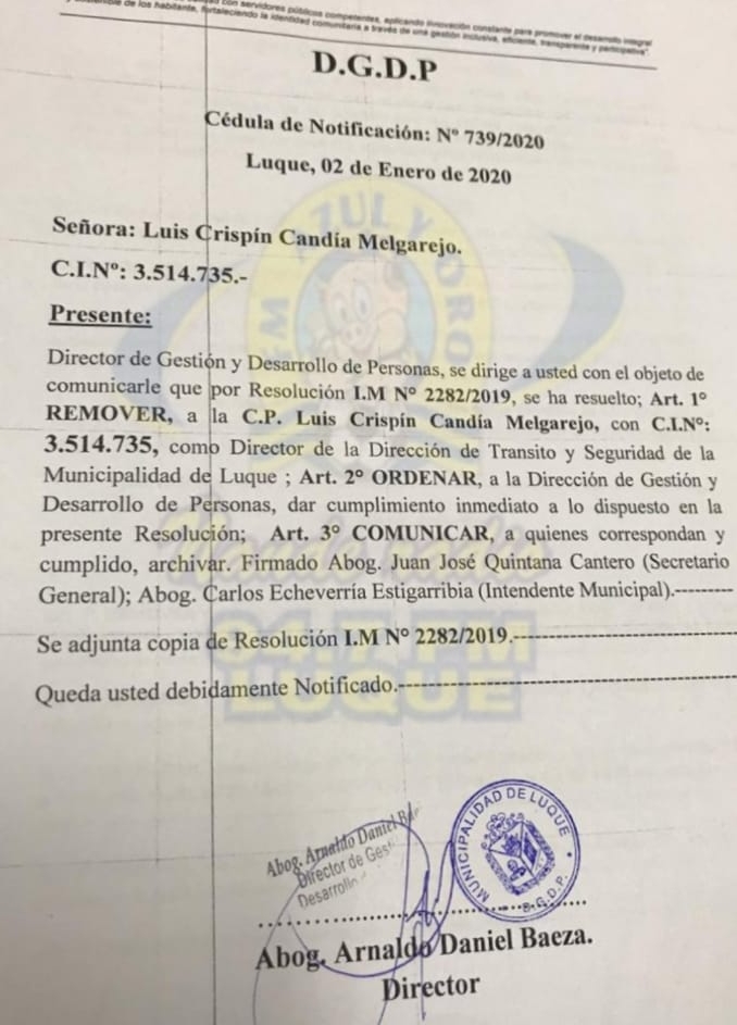 Destituyen al Director de Tránsito Luis Candía.