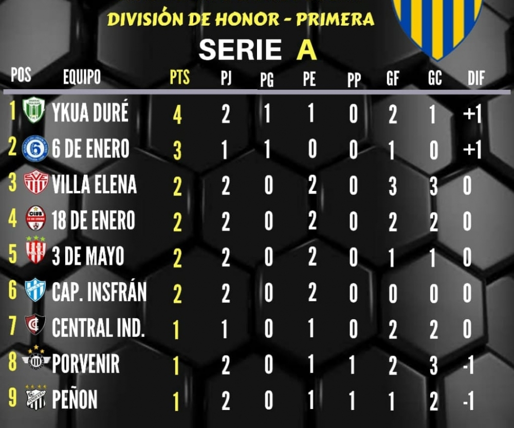 Tabla de posiciones del campeonato 2020
