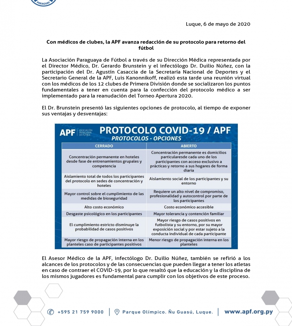 Reunión virtual entre médicos de los clubes de la APF
