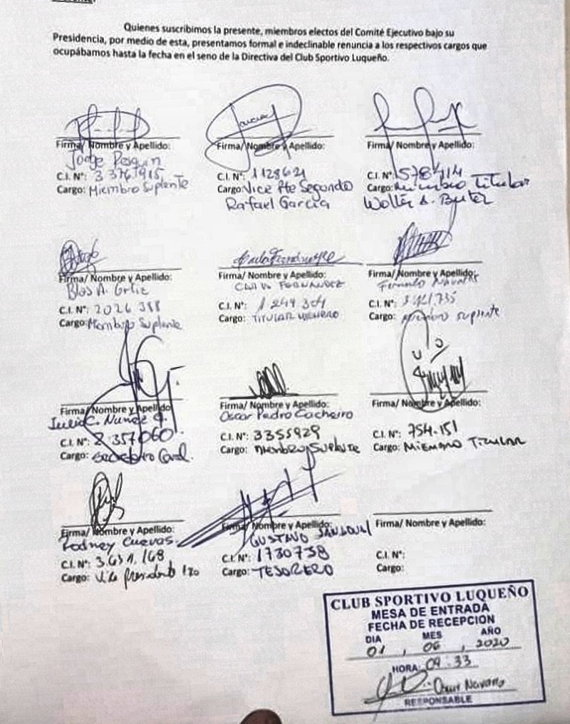Dirigentes presentaron sus renuncias al Comité Ejecutivo del Sportivo Luqueño.
