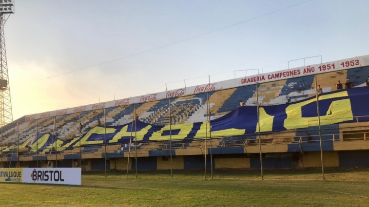 Banderas del Kuré Luque en el estadio Feliciano Cáceres