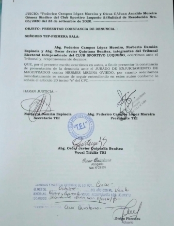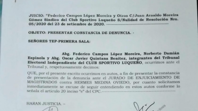 Denuncian al Magistrado Dr. Hermes Medina ante el JEM