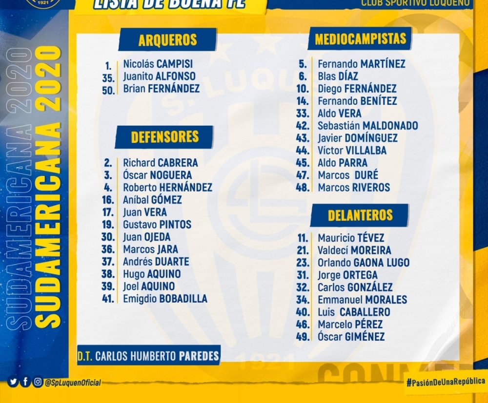 Lista de buena fe del Sportivo Luqueño