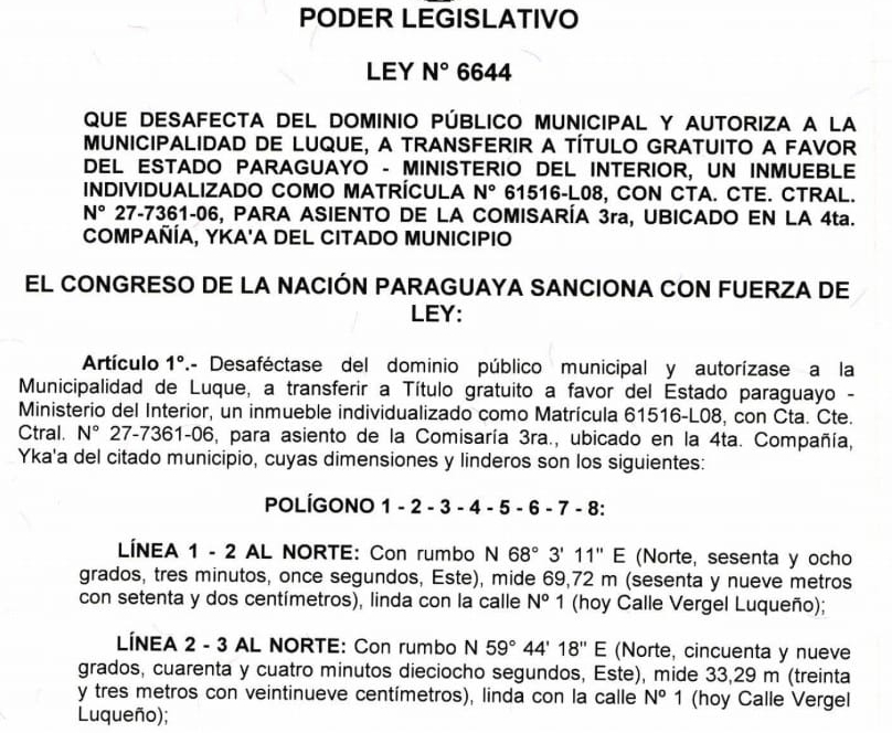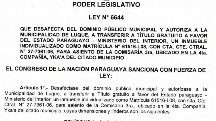 Por ley se desafecta una propiedad para sede de la Comisaría Tercera