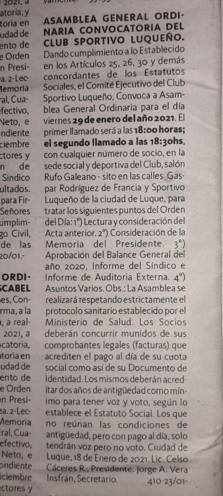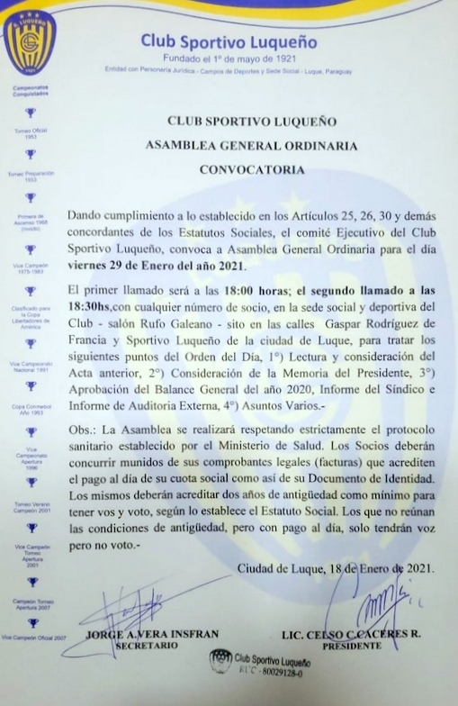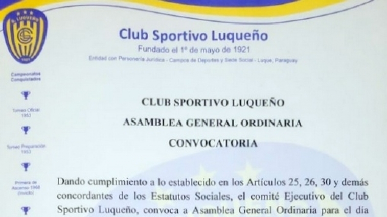 Sportivo Luqueño convoca a asamblea para el 29 de enero