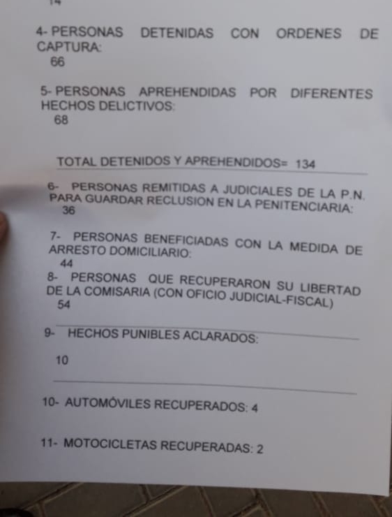 Resumen de actividades del Crio. Ppal. Osvaldo López