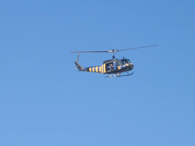 Merly Reyes sobrevolaba sobre el estadio con el helicóptero pintado con los colores auriazules