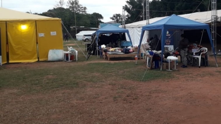 En el predio del Club Julio Correa está instalada el toldo