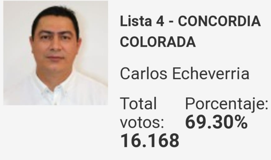 Obtuvo 16.168 votos, lo que significa el 69.30 % de los electores