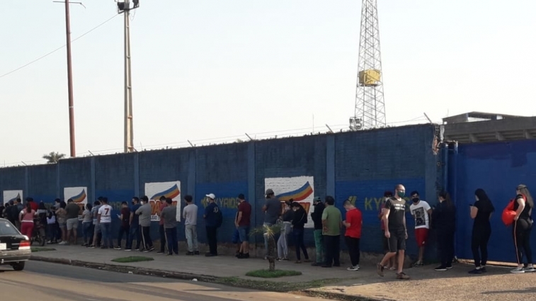 Larga fila de personas para ingresar al vacunatorio del Rufo Galeano