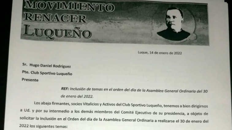 El Mov. Renacer Luqueño presentó una nota al Club Sportivo Luqueño