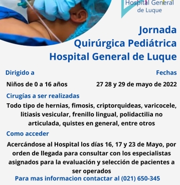 Los días 27, 28 y 29 de mayo en el Hospital General de Luque