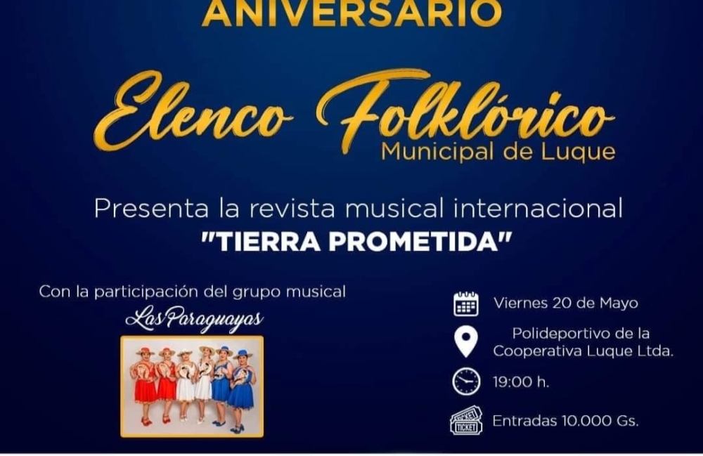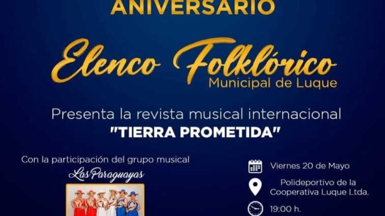 El Elenco Folklórico Municipal de Luque prepara un gran show artístico para este viernes en el polideportivo de la cooperativa. Se trata de una revista musical que contará con la participación de grandes artistas como el conjunto de cantantes “Las Paraguayas”.
