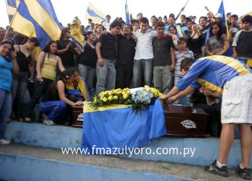 Familiares, amigos e integrantes de la Barra Bayo despidieron con mucho dolor a Pedro Orlando Martínez, integrante de la hinchada. El joven perdió la vida presuntamente en manos de Emilio Ramón Sanabria, de 20 años quien le disparo con un arma de fuego calibre 38 mm, el fin semana pasado.