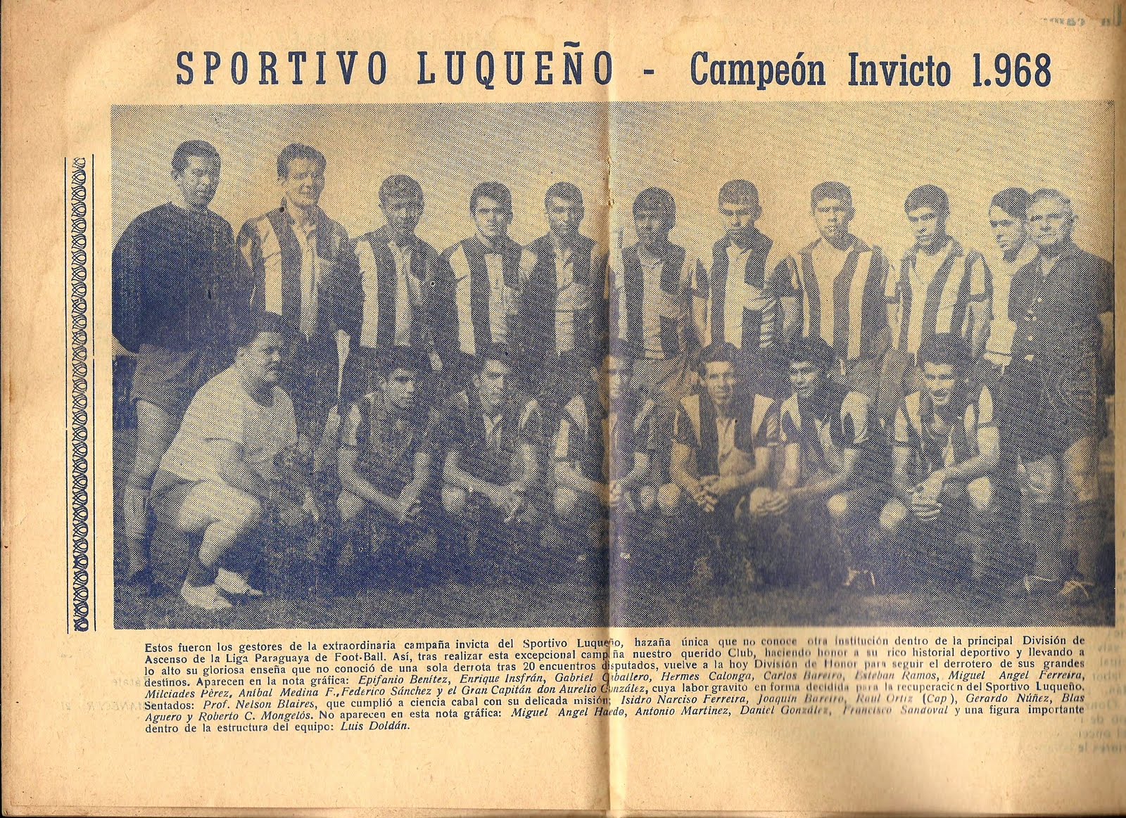 Después de transcurrir por 5 años en la priricipal Division de Ascenso de la entonces Liga Paraguaya de Fútbol, hoy APF, el Club Sportivo Luqueño retornaba a la Division Principal, encabezados por una directiva que apareció como la alternativa de cambio, con el Sr. Juan Hipolito Matiauda como Presidente, que como primera medida fue contratar al Gran Capitán Don Aurelio Gonzalez como D.T., Prof. Nelson Blaires preparador físico y Kinesiologo Julian Vazquez, Utilero Sixto Nuñez.-