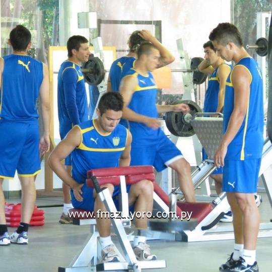 Los primeros movimientos se llevaron a cabo en el gimnasio del complejo. Los futbolistas de Luqueño realizaron trabajo de fuerza y potencia, musculación, circuito, velocidad y pliometria. También el preparador físico Jorge Salas ordenó cambio de dirección y velocidad corta 5x 10.