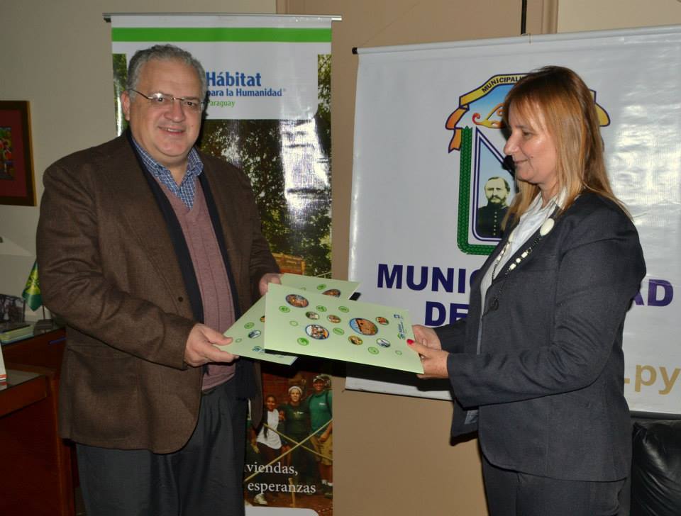 El Intendente César Meza Bría rubricó esta mañana un convenio de cooperación interinstitucional con la organización civil Habitad para la Humanidad Paraguay, representada por su Directora Ejecutiva, doña Mary Lechenuk Lisnichukque tiene por objetivo articular esfuerzos para la identificación y atención de comunidades con necesidades de viviendas dignas; y la implementación de programas para brindar soluciones habitacionales a esos núcleos sociales.