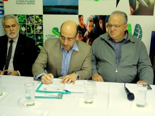 En el acto de firma de convenio también asistió el arquitecto Gustavo Glavinich en representación del Ministerio de Obras Públicas y Comunicaciones, quien informo que la cartera de estado cedió a la fundación "A Todo Pulmón, Paraguay respira" en la fecha 2 hectáreas del Parque Guasú Metropolitano para su arborización