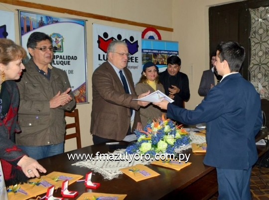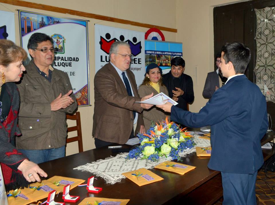 Nota: a) Eliseo Maldonado Director de Cultura de la Municipalidad de Luque.b) Acto de Premiación del Concurso Talentos Literarios