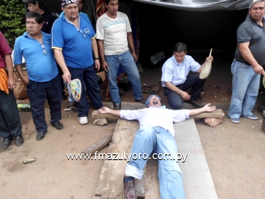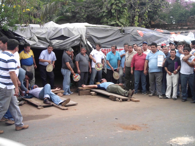 Nota: a) Dario Vera - Claudio Ramírez Huelguistas Cruzificados b) Bernardino Villalba Secretario del Sindicato de Choferes