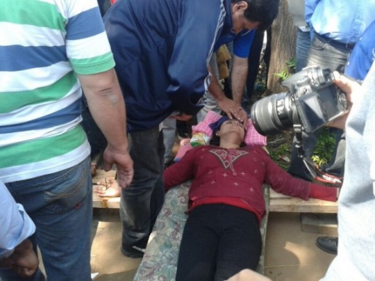 María Candia, esposa de uno de los crucificados que se adhirió a la medida de fuerza. / Lorena Aponte, ABC Color