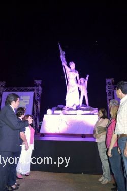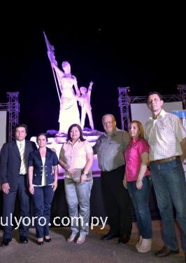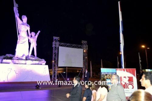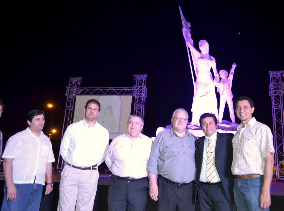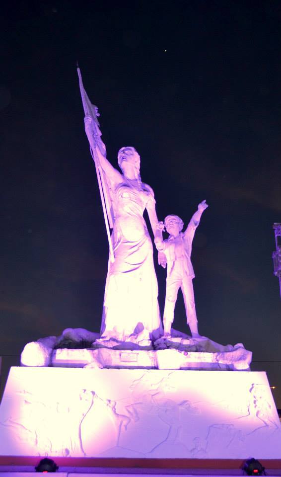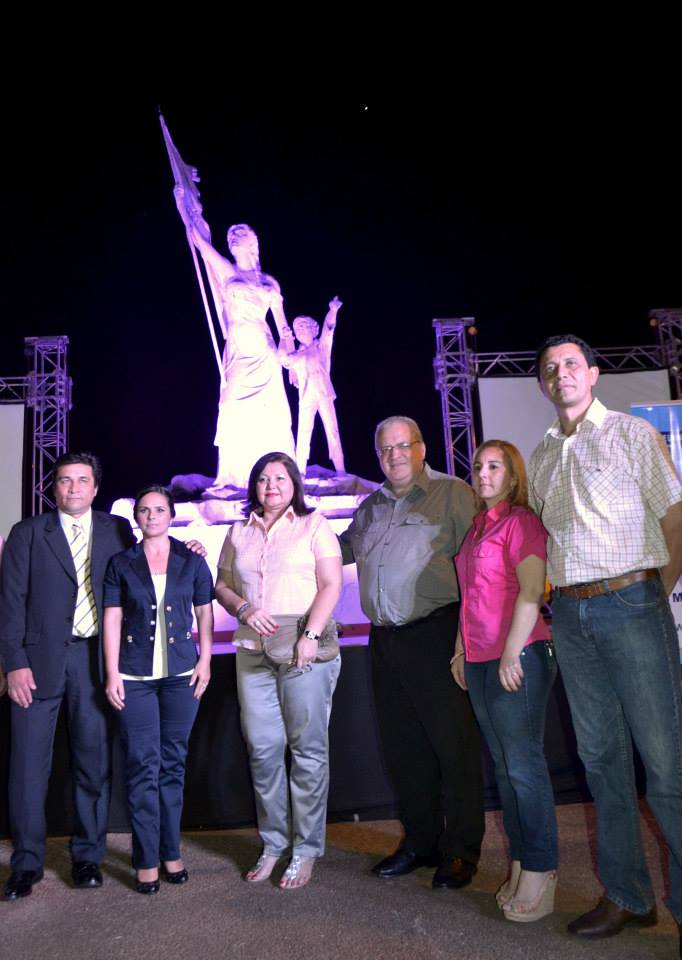 Acto inaugural de la presentación de la Campaña para la detección precoz del Cáncer de Mamas "Tocate" frente a la estatua de Las Residentas, que permanecerá iluminada de color rosa durante un mes, a fin de crear conciencia en la ciudadanía.