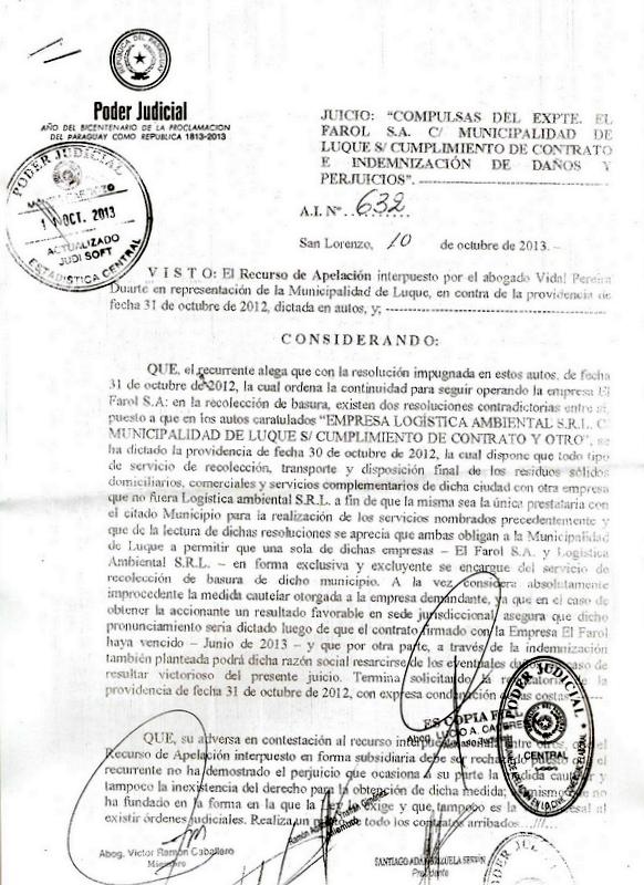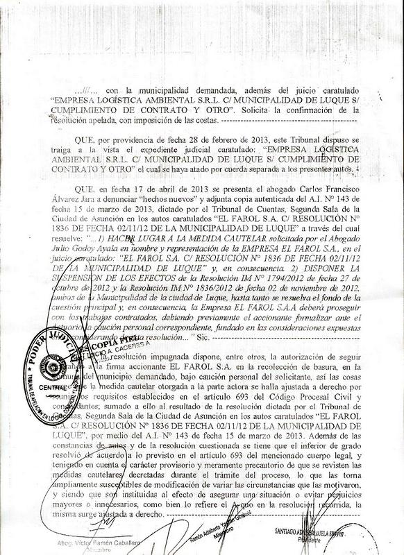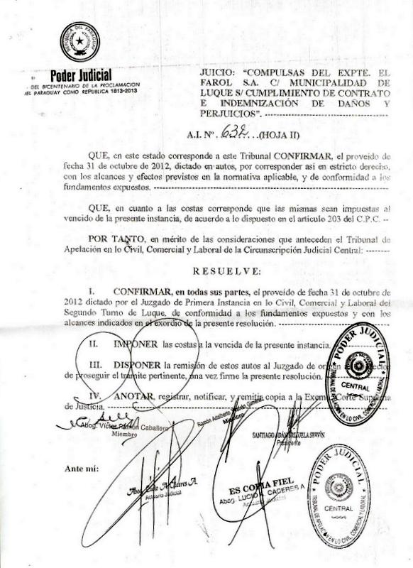 TRIBUNAL DE APELACIONES CONFIRMA RESOLUCION A FAVOR DEL FAROL