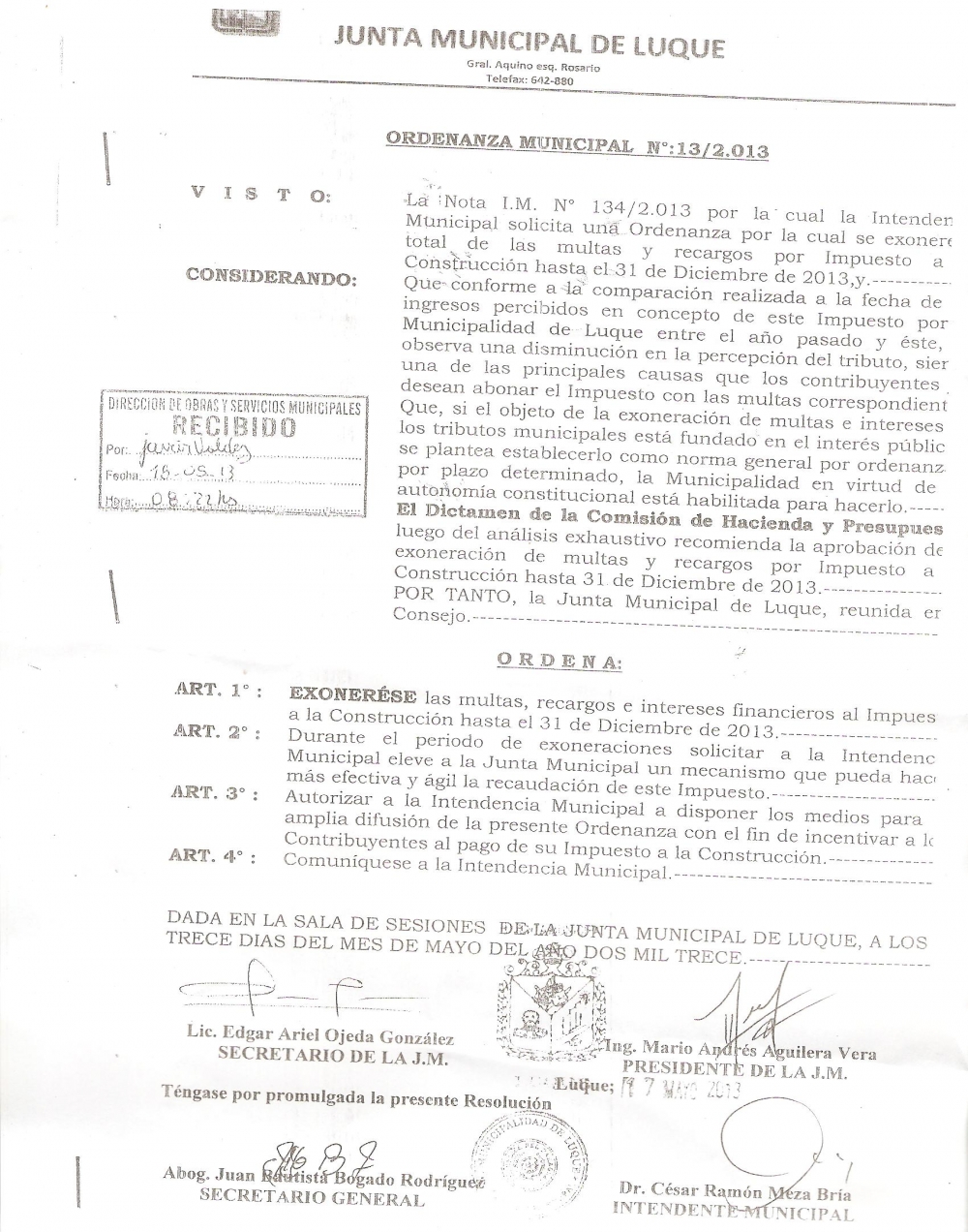 MUNICIPALIDAD DE LUQUE NOTIFICA E INTIMA A CONTRIBUYENTES SOBRE PLANOS DE CONSTRUCCION