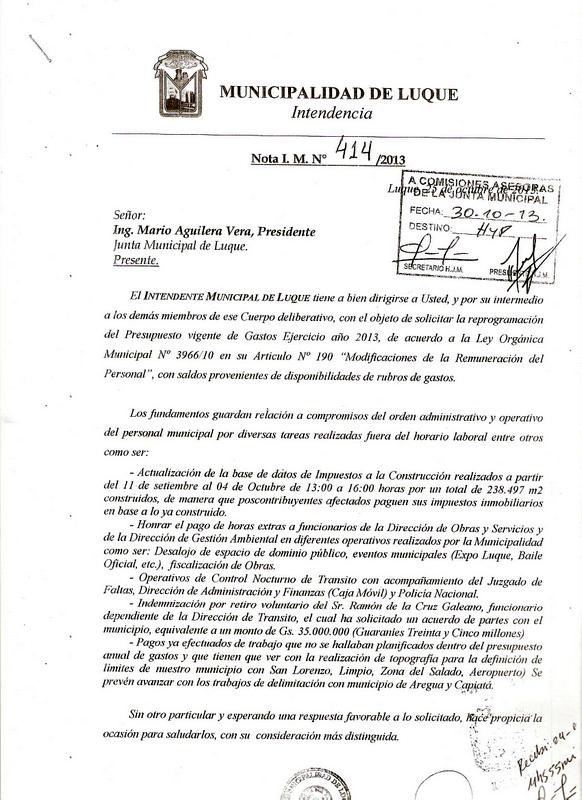 MUNICIPALIDAD DE LUQUE GASTARA 665 MILLONES MAS ESTE AÑO EN SALARIOS