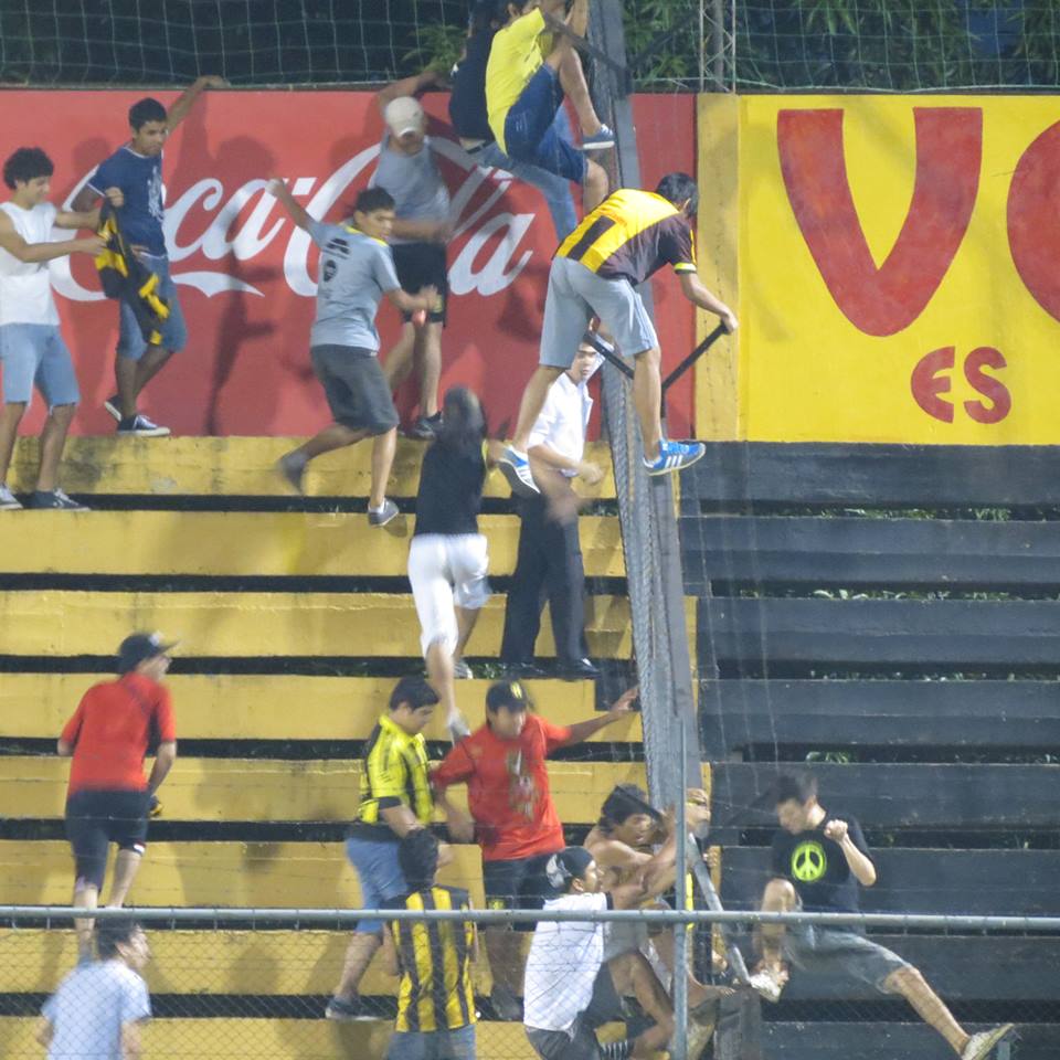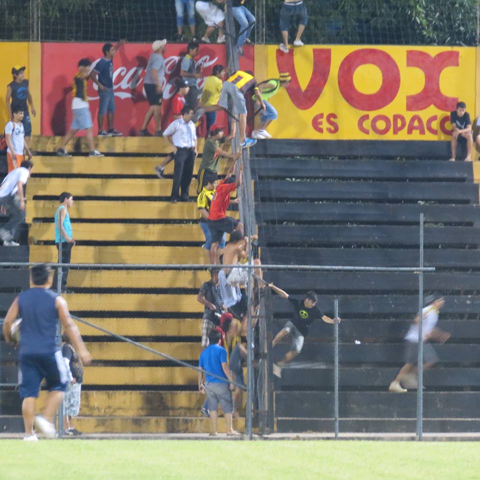 En el entretiempo del segundo juego entre Guaraní y Luqueño se produjeron incidentes que no pueden repetirse más. En las imágenes se observa a los aficionados locales cuando sobrepasaban la valla que dividía de los hinchas auriazules.