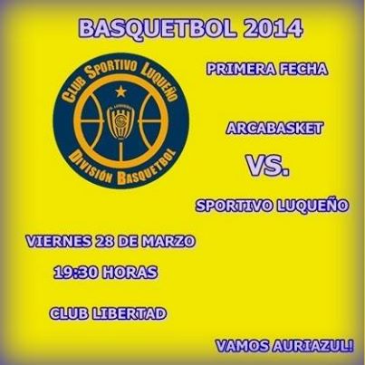 Oficialmente el inicio del Campeonato será el viernes 28 de marzo y el Sportivo Luqueño (campeón 2013 categoría Ascenso) deburtará frente al Arca Basket (vice-campeón 2013 categoría Ascenso) en el polideportivo del Club Libertda a las 19:30 hs!!..a 1 semana de este gran desafío con optimismo y sacrificio estamos dando pasos gigantes y alentadores amigos..Apoyemos como siempre a nuestro gran equipo!!